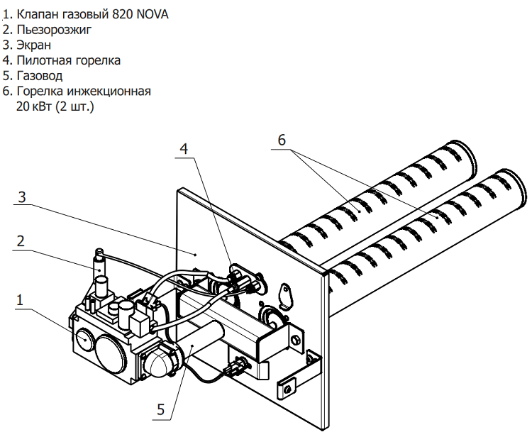 Горелочный блок оборудован такими узлами: