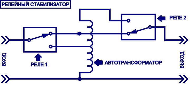 Релейные устройства обладают автоматизированным трансформатором и специализированной электронной схемой, управляющей трансформатором. Они имеют отличие — это реле, из-за чего получили свое наименование.