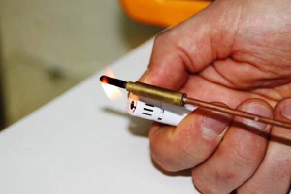- Один из наконечников присоединяют к мультиметру, а второй нагревают при помощи обычной зажигалки.