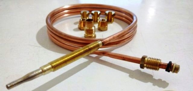 Все термопары выпускаются разными по длинам от 45 до 120 см, что связано с конструкцией плит. Важно при установке обратить внимание на то, что проводники датчика в зоне до клапана не должны быть перетянуты либо болтаться. Их соединение с клапаном обязано быть жестким, свободный разъем в данном соединении непозволительно.