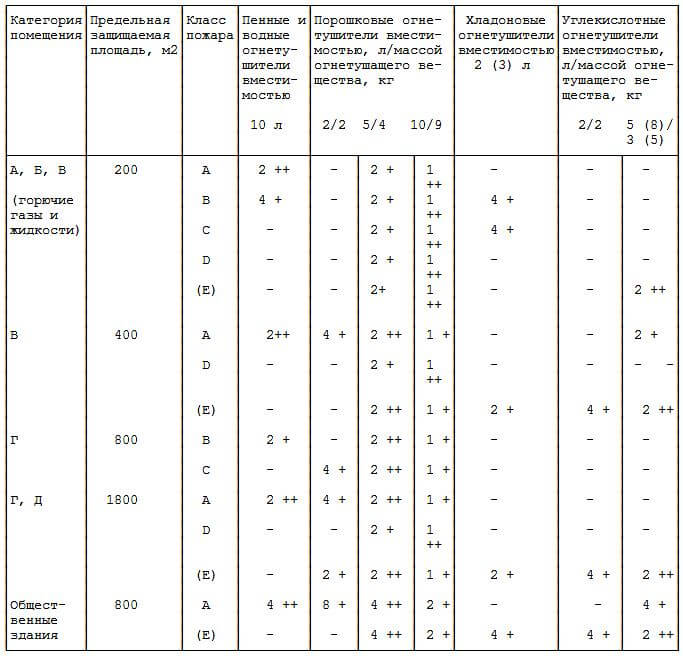 Когда на объекте существует возможность различных возгораний, например, электротехники и смазочных материалов, то выбирают универсальные огнетушители. Положено на каждом этаже здания располагать не менее 2 единиц.