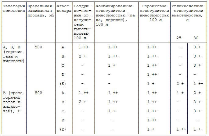 Площади малогабаритных помещений допускается суммировать, в том случае, когда между ними существует проход. В случае, когда в здании имеется автоматическая система пожаротушения, допускается устанавливать 50% огнетушителей от норматива оснащения.