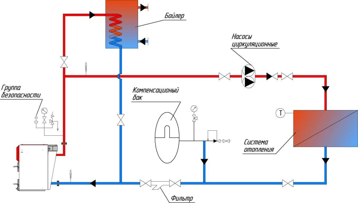 Обвязка двухконтурного газового котла с 2-мя циркуляционными насосами