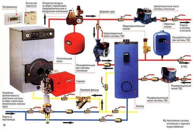 Для ГВС используется именно главное оборудование, а не бойлер, поэтому большинство потребителей устанавливают 2 насоса, первый элемент монтируют в трубу подачи бойлера, а второй в контуре отопления, что позволяет человеку сразу пользоваться горячей водой.