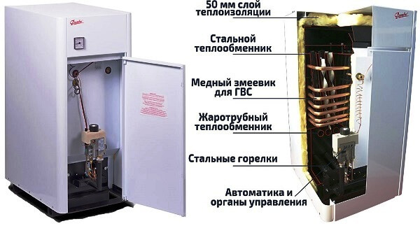 - металл теплообменника: сталь, чугун и медь.