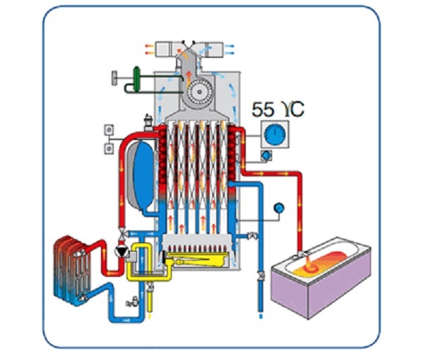 При выключении крана горячей воды происходит обратный переход в режим отопления. Некоторые производители предусматривают нагрев обоих теплообменников при периодическом переключении.