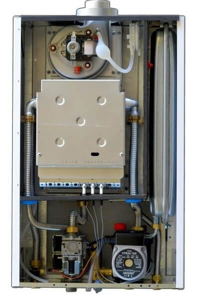 Работа агрегатов полностью автоматизированная и имеет несколько уровней защиты. Газовый котел имеет два теплообменника на отопительном контуре из меди, а в системе ГВС — из стали.