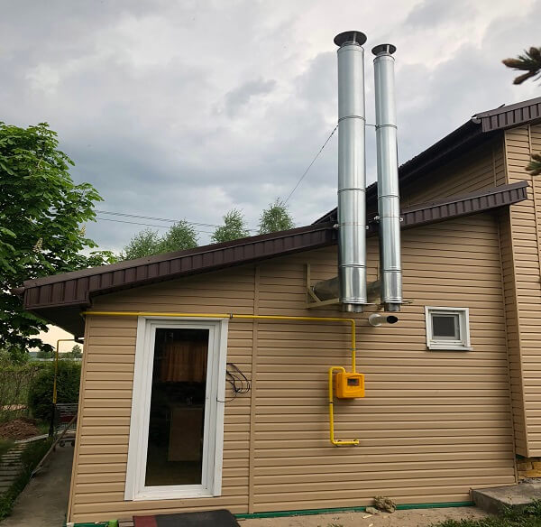 - система дымоотвода устанавливается в согласованности с мощностью котла, должна обеспечить полный вывод дымовых газов в атмосферу и иметь запасной люк для проведения обслуживания и очистки от сажи;