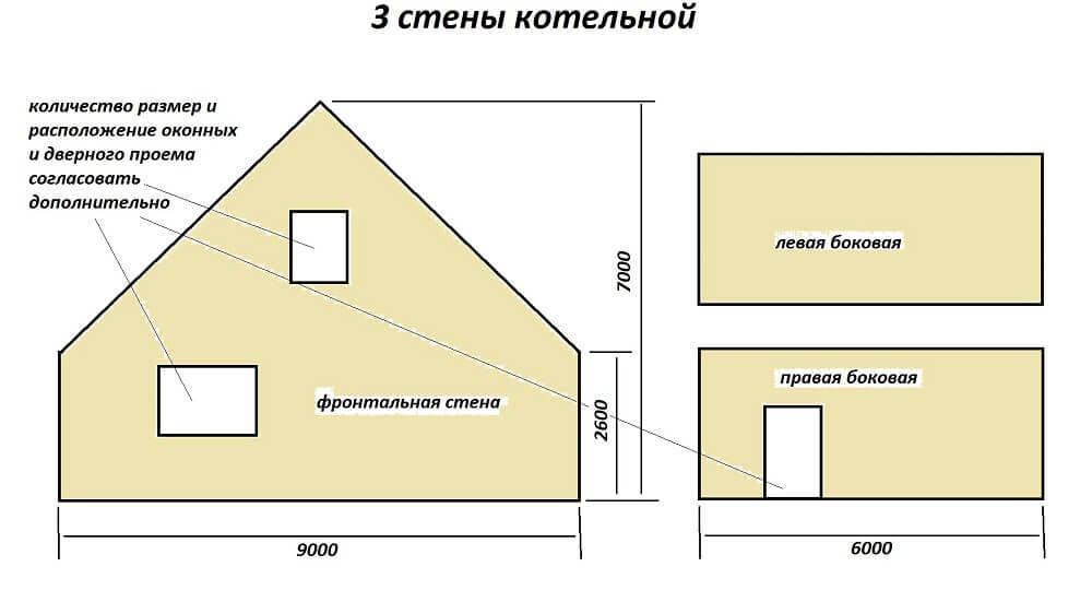 Внешний вид котельной Вы можете подбирать сами. Самое главное соблюдать требования к дверям окнам, вентиляции и площади помещения.