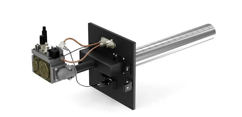 В бытовых котельных установках используют два вида горелок: атмосферные и надувные. Атмосферные, которые устанавливаются в агрегатах с естественным дымоотводом отработанных газов в открытых топках. Данные горелки забирают воздух для горения непосредственно из помещения, в котором расположены.