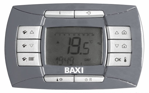 - С тепловой мощностью от 15 до 25 кВт. Двухконтурные котлы Baxi с ЖК-дисплеем и битермическим теплообменником
