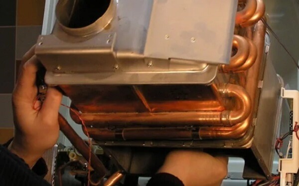 На данной стадии требуется диагностировать состояние теплообменников газового котла. Они бывают первичными для отопления и вторичными для ГВС. Это самые проблемные узлы агрегата, которые наиболее часто подвергаются износу и поломкам.