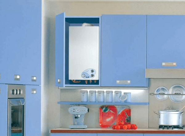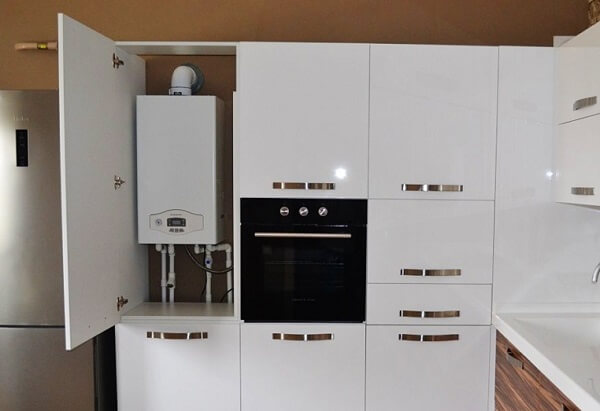 В случае, когда необходимо закрыть котел, вмонтировав его в кухонную обстановку, очень важно собственнику тщательно продумать его расположение, для того, чтобы оно согласовывалось с направлением циркуляции воздушных масс.