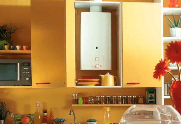 Современные строительные материалы и дизайнерские проекты способны замаскировать колонку на небольшой кухне. Накануне ее приобретения, необходимо позаботиться о зоне будущего месторасположения. От данного будет зависеть размер и модификация. Безупречным местом, считается кухонный шкаф.