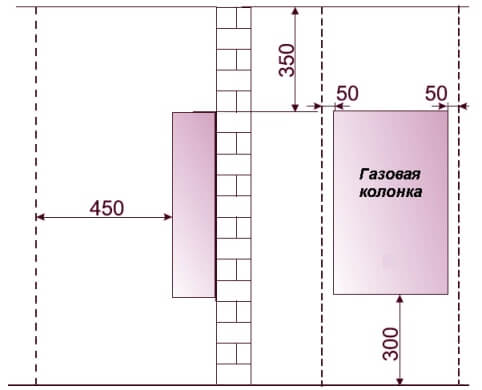 Размер его обязан быть выше габаритов колонки. Наименьшее расстояние между ними должно быть более 30 мм. Такие условия обеспечивают вентиляцию и предотвращают возгорание.