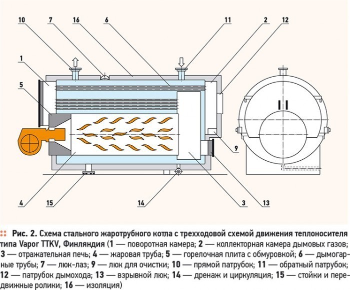Оборудование представляет собой газотрубные установки с жаровыми трубами, в которых циркулирует горящее топливо.