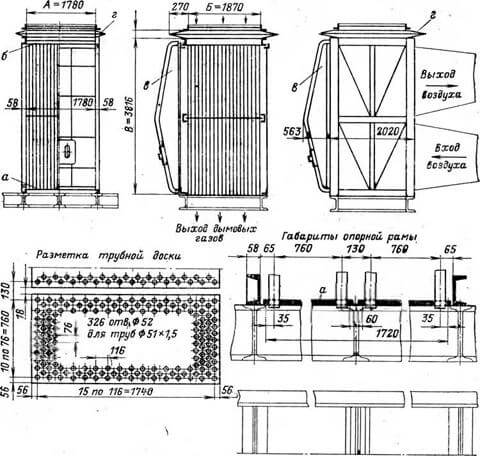 Рекуперативный трубчатый воздухоподогреватель отличается простотой конструкции. Трубы приварены к доскам и расположены вертикально.